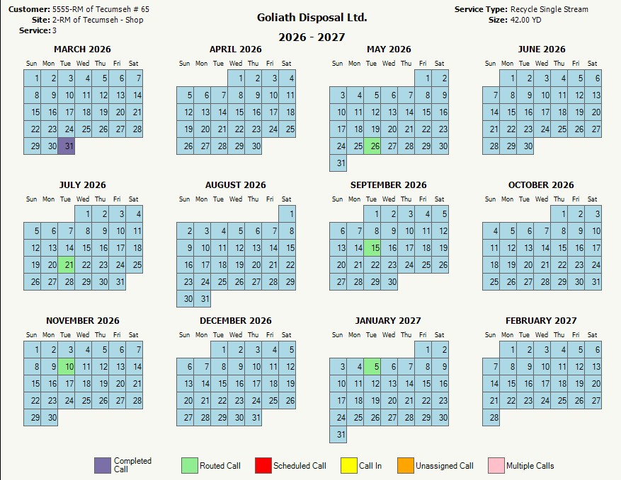 The RM of Tecumseh No. 65 offers a garbage and recycling program through Goliath Disposal. The program offers a 3 yard garbage bin that is tipped once per month funded by the municipality, any addition tips are billed to the agreement holder directly. We also have a recycling bin located at the RM Shop at SW 34-8-8-W2 that is switched out bi-monthly.